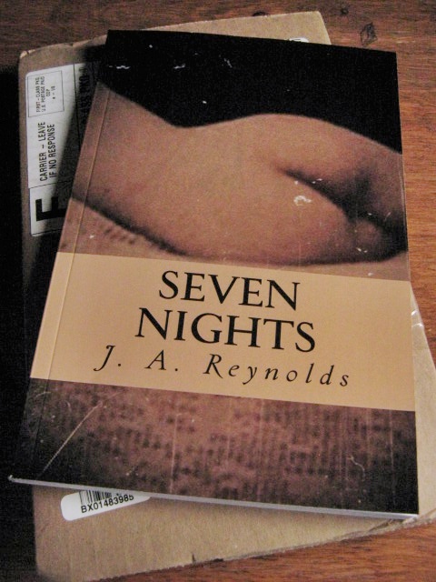 Look what came in the mail today! It’s my proof of Seven Nights. I perused it sitting on the front porch in the sun this afternoon and found two small errors.